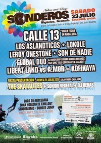 Line Up: CALLE 13 (única fecha en todo el sur de España), LOKOLÉ, LOS ASLÁNDTICOS, LEROY ONESTONE, SON DE NADIE, KOFIKAYA, LIBERT LAND vs. A. MOR y GLOBAL DÚO: Dj ANDYLOOP feat. DMC TILLO “Orishas - Macaco” (presentación exclusiva)